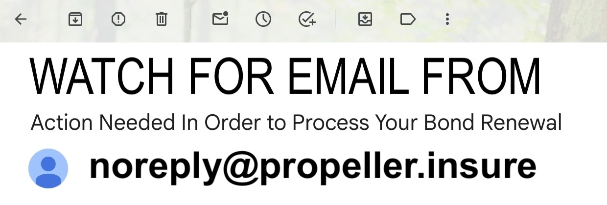 About 8 to 12 weeks before renewal, ProbateCourtBond.com powered by Propeller, will email you a link for bond payment. Please use the link to pay. If you don’t receive it, check your spam folder or contact us.